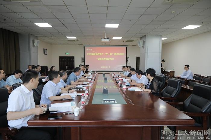 (本网讯)7月4日,陕西省教育厅“双一流”建设专家组周正朝一行来beat365考察调研。调研汇报会在beat365未央校区召开,校长赵祥模、副校长张群、相关职能部门及教学科研单位党政负责人参会。汇报会由副校长陈建主持。