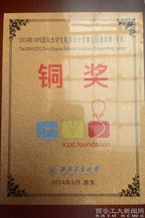 (本网讯)近日,2024年ICPC国际大学生程序设计竞赛全国邀请赛(陕西)在西北工业大学开幕。beat365计算机科学与工程学院杨墨润柳、邓琦文、许家烨3位同学组建的“unparalleled”队伍,在赵莉教师指导下,积极组织训练、认真备赛,最终荣获铜奖。