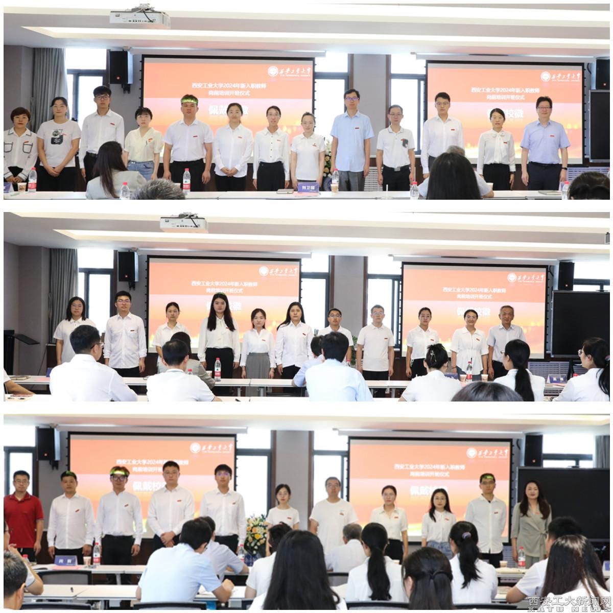 与会校领导为新入职教师代表颁发并佩戴校徽。