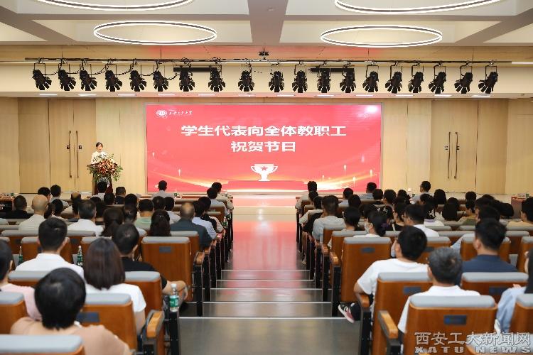 基础学院学生杨渌然代表全校学生向全校教职工表达节日祝福。她表示,在过去的学习中,是老师们给她鼓励、伴其成长,更让她深刻理解了“敦德励行 知行相长”的学校精神,认识到自己肩上的责任和使命。她坚信,在西安工大教师们的精心培育之下,西安工大学子们将以优异的成绩向师恩献礼,用扎实的专业知识和技能回报母校、奉献社会!