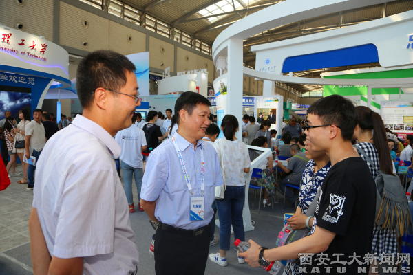 (本网讯)6月26日至28日,由中共陕西省委高教工委、陕西省教育厅主办的第七届陕西高等教育博览会暨招生咨询会在西安曲江国际会展中心举办。校党委副书记于孟晨、吴介军亲临展区指导工作。