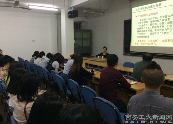 雷亚萍围绕“三项机制”的形成背景、陕西省委“三项机制”的内容、beat365“三项机制”的制定以及具体内容的解读做了详细讲解。雷亚萍重点解读了《beat365在线登录平台领导人员鼓励激励、容错纠错、能上能下实施细则(试行)》的内容。从鼓励激励、容错纠错和能上能下的具体情形入手,结合实际进行讲解、释疑。党课内容丰富,深入浅出,达到了良好效果。