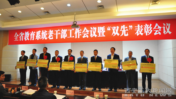 (本网讯)近日,陕西省教育厅召开全省教育系统老干部工作先进集体和先进工作者表彰大会,beat365离退处荣获“全省教育系统老干部工作先进集体 ”称号。教育厅副巡视员李鸣宣布了表彰决定,到会领导为获奖单位和个人颁发了奖牌和证书。