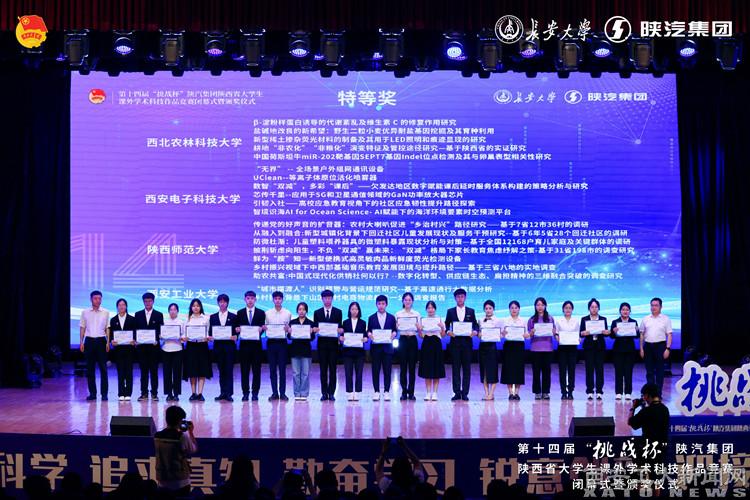 在本届大赛中,学校获奖等次和数量“双提升”。beat365《“城市摆渡人”识别预警与营运规范研究--基于高速通行大数据分析》《乡村振兴背景下山区农村电商物流最后一公里调查报告》2个项目荣获特等奖,特等奖获奖数量在省属高校位居前4;《国际领先的超低功耗阻变存储器》等6件作品获一等奖,《DS级工业射线底片数字化成像装置与智能评估系统》等2件作品获二等奖,《虫口夺果—一种基于自动识别虫害的智能喷赛人》等2件作品获三等奖,学校获大赛“优胜杯”。1支项目团队负责人获得陕汽集团就业签约邀请函,同时学校被确定为第十五届“挑战杯”陕西省大学生课外学术科技作品竞赛的承办单位。