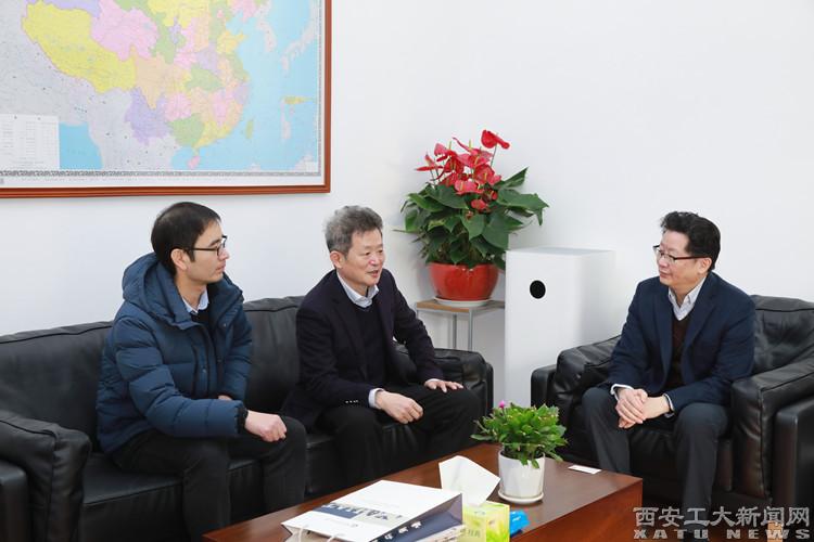 (本网讯)1月3日,惠州华阳集团副总裁、惠州市华阳多媒体电子有限公司董事长韩继军一行来校,就设立“华阳多媒体奖学金”和平视显示系统(HUD)研发中心等事宜进行深入交流研讨。校党委书记刘卫国会见了韩继军一行,双方进行了亲切交谈。