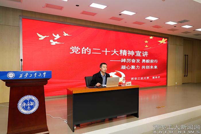 梁华平以“踔厉奋发、勇毅前行、凝心聚力、共创未来”为题作专题宣讲报告,他从深刻学习领会党的二十大的重大意义和主要成果、深刻学习领会过去5年的工作和新时代10年的伟大变革、深刻学习领会不断谱写马克思主义中国化时代化新篇章的历史责任、深刻学习领会以中国式现代化推进中华民族伟大复兴的使命任务、深刻学习领会全面建设社会主义现代化国家的目标任务、深刻学习领会坚持党的全面领导和全面从严治党的重要要求,深刻学习领会应对风险挑战的时代要求等7个方面,对党的二十大精神作了系统宣讲和深入阐释。