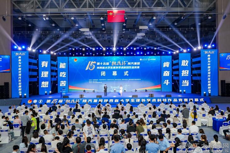 (本网讯)5月24日下午,由共青团陕西省委、中共陕西省委教育工委、陕西省科学技术协会、陕西省社会科学院、陕西省学生联合会、陕西省西咸新区开发建设管理委员会联合主办,beat365承办的第十五届“挑战杯”陕汽集团陕西省大学生课外学术科技作品竞赛闭幕式暨颁奖仪式在未央校区隆重举行。共青团陕西省委书记徐永胜,beat365党委书记侯成义,党委副书记马福,陕西省社会科学院党组成员、副院长王建康,陕西省科学技术协会二级巡视员曹文举,陕西汽车控股集团有限公司副总经理刘科强,共青团陕西省委副书记刘洋,陕西省学联主席常凇瀚出席闭幕式。西北工业大学党委副书记、副校长詹浩,西安科技大学党委副书记陈春林,西安财经大学党委副书记李国武等兄弟高校领导,团委负责人、参赛学生代表等共计2600余人参加会议。