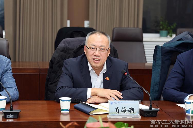 姚尧代表学校对肖海潮一行的到来表示欢迎,并重点介绍了学校的国防优势特色学科、兵工特色以及近年来在科学研究方面取得的创新成果。他表示,学校在光学制造、机械加工、3D打印等相关领域的研究与航天长峰产业方向高度契合,希望今后在科学研究、人才培养、成果转化等方面加强交流,增进合作,促成更多项目落地,推进合作共建。