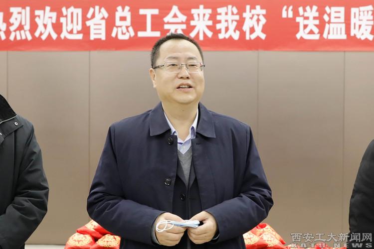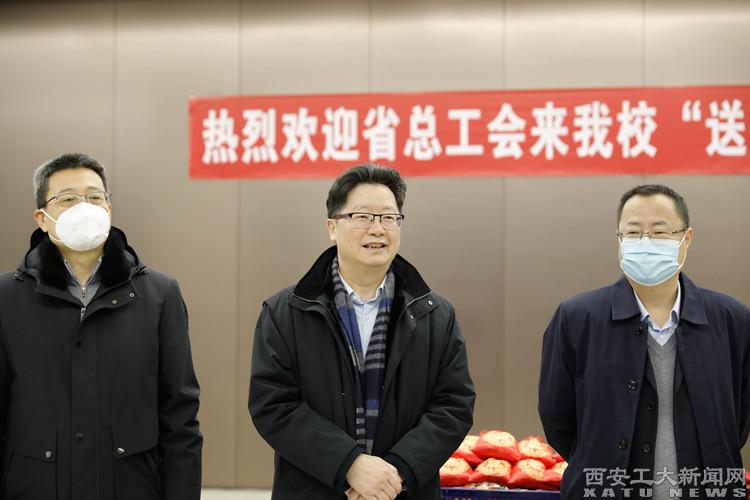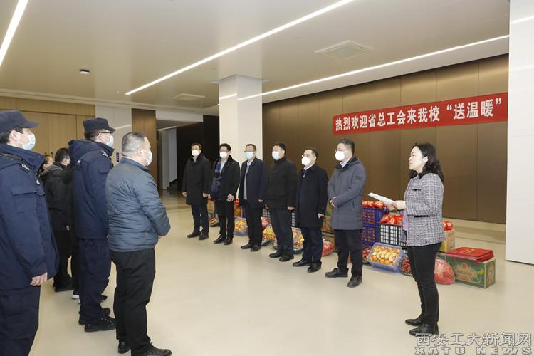 (本网讯)1月13日上午,陕西省总工会党组成员,省纪委监委驻省总工会机关纪检监察组组长强文哲,陕西省教科文卫体工会主席徐富权,省纪委监委驻省总工会机关纪检监察组三级调研员赵国强一行来beat365看望慰问疫情防控一线、假期值班人员及困难教职工。beat365党委书记刘卫国、校长赵祥模、副校长张群、陈建带领党校办主任及工会主席陪同慰问。