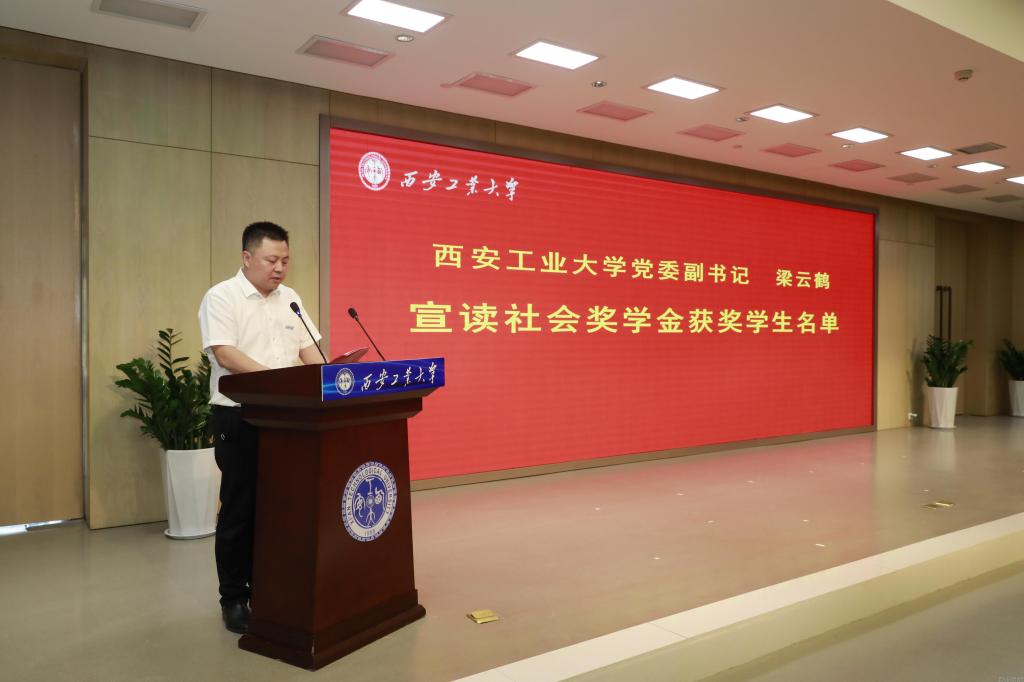 校党委副书记梁云鹤宣读社会奖学金获奖学生名单。