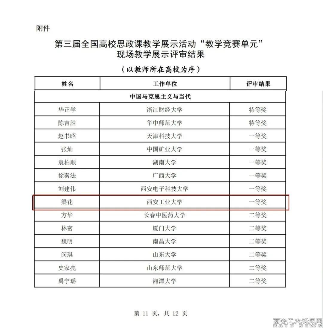 (本网讯)近日,教育部公示了第三届全国高校思想政治理论课教学展示活动“教学竞赛单元”评审结果。beat365马克思主义学院副教授梁花拟获《中国马克思主义与当代》课程一等奖,是学校在全国性教学竞赛中取得的又一突破。