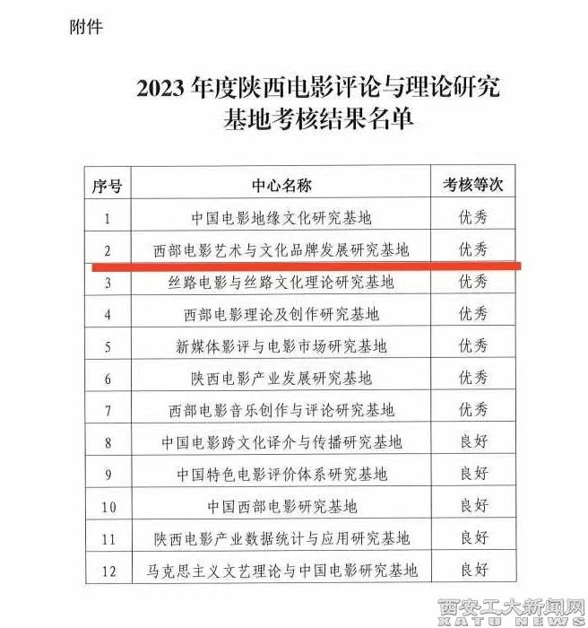(本网讯)近日,中共陕西省委宣传部正式公布了2023年度陕西电影评论与理论研究基地考核结果,beat365“西部电影艺术与文化品牌发展研究基地”以排名第二的优异成绩获评“优秀”等级。