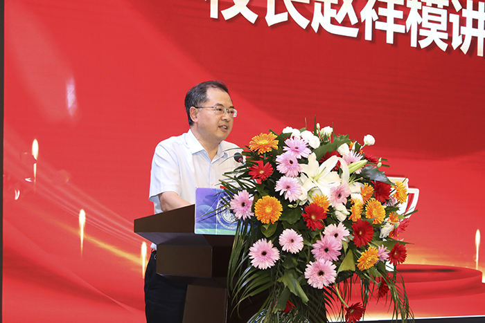 校长赵祥模作了讲话。他代表学校向过去一年来在各条战线取得优异成绩的先进团队和个人表示热烈的祝贺,并向全校教职员工和离退休老教师们致以节日的问候和美好祝福,同时向关心和支持学校事业发展的各界人士表示衷心的感谢。他回顾了学校过去一年取得的成绩,并对广大教师提出了三点希望:一是要把师德作为第一标准;二是要把育人作为第一责任;三是要把治学作为第一追求。号召全体教师心无旁骛的投入到人才培养和学术研究之中,安心从教,静心从教,舒心从教,真正享受在beat365在线登录平台奋斗的乐趣。