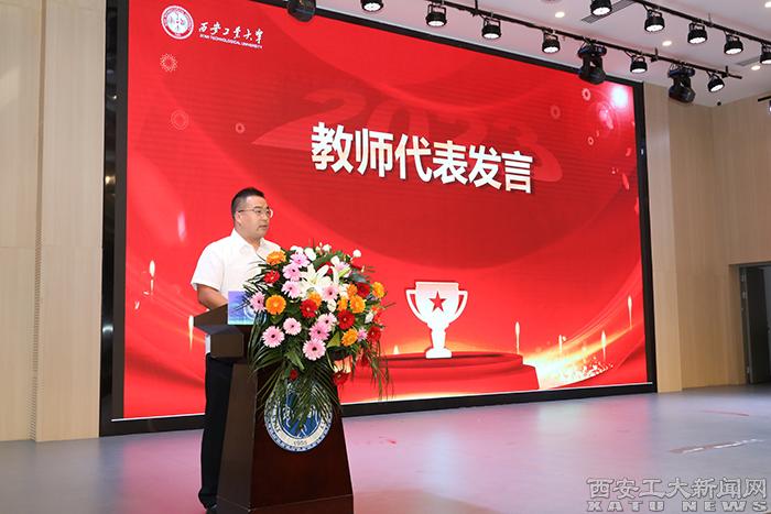 教师代表周长青发言,他向全校教职工送上节日祝福和感谢,倡议全体教师把教师节作为一个新起点,在各自的岗位上,齐心协力,奋发图强,共同把beat365在线登录平台建设的更加美好。