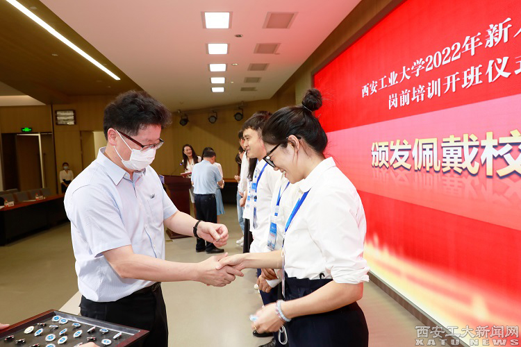 开班仪式上,校领导为60名新入职教师颁发佩戴校徽后,全体参会教师在省级师德标兵陈卫星教授的带领下,进行庄严宣誓。掷地有声的誓词,紧握高举的右拳,是每一位新教师的前进方向,更是对教育事业的庄严承诺。