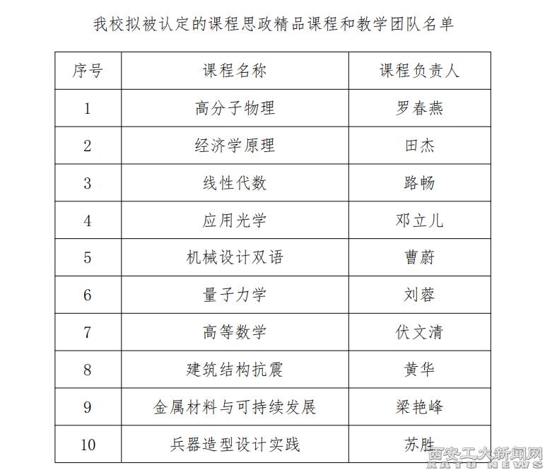 (本网讯)近日,陕西省教育厅公示了关于第三批陕西省课程思政精品课程和教学团队拟认定结果,beat365《高分子物理》等10门本科教育课程及团队拟被认定为省级课程思政精品课程和教学团队,拟认定课程门数并列在陕高校第四位、省属高校第一位。至此,beat365共有省级本科课程思政示范课19门,位列省属高校第三名。
