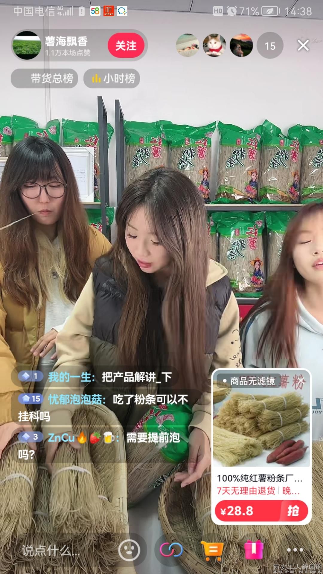 对接网红达人,拓展带货渠道:12月19日,驻村工作队主动出击,前往电商发展前沿的杨家村取经,深入学习电商直播经验,积极对接网红达人,探索达人带货新模式。12月24日至今,驻村工作队联合网红达人“富平曼姐”“雪儿”“红薯姐姐”“许凯”火力全开,开启直播带货盛宴,多款红薯粉条产品一经推出便被抢购一空。