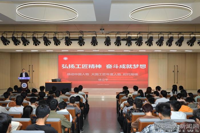 徐立平以“弘扬工匠精神 奋斗成就梦想”为主题,在报告中介绍了我国航天事业的发展历程以及取得的辉煌成就。他结合自身在航天事业默默坚守30余年的经历,回顾了航天创业者的艰辛奋进,用最真切的工作案例生动展示了航天人的牺牲、奉献,诠释了大国工匠执着专注、精益求精、一丝不苟、追求卓越的工匠精神内涵。他勉励现场的青年大学生们以梦为马,逐梦青春,立志民族复兴,不负韶华,不负时代,在青春的赛道上奋力奔跑,让奋斗成为青春最亮丽的底色,让人生在实现中国梦的奋进中收获无限精彩。