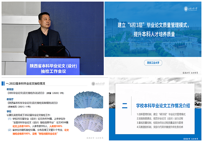 (本网讯)近日,省教育厅、省学位委员会在西安建筑科技大学雁塔校区召开全省本科毕业论文(设计)抽检工作会议。省政府学位委员会秘书长袁宁出席会议并讲话,教育部学位与研究生教育发展中心论文质量监测处处长李恒金出席并作专题报告,会上通报了全省2021-2022学年本科毕业论文(设计)抽检有关情况,对全省新一轮抽检工作作了安排部署。全省56所学士学位授予单位分管本科教学工作的校领导、本科教学部门负责同志、抽检工作有关人员共200余人参加会议。
