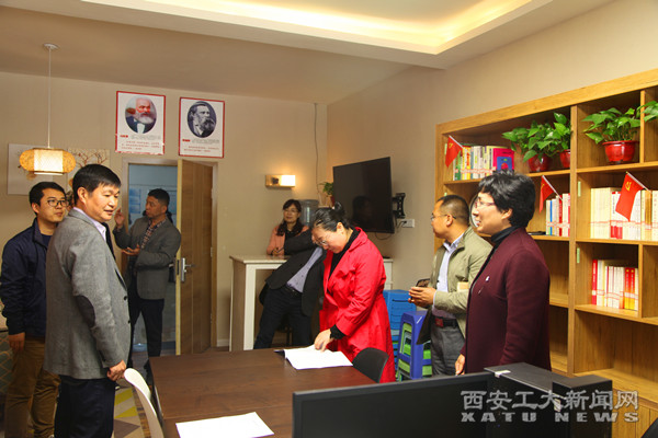 在走访调研过程中,吴介军对工作站建设中的统一标识标牌、内部功能分区设计进行了指导,并着重强调了辅导员要把贴近学生的工作放在工作站中进行办理,让公寓辅导员工作站成为学生广泛知晓、能够寻求帮助并参与学习的成长空间。