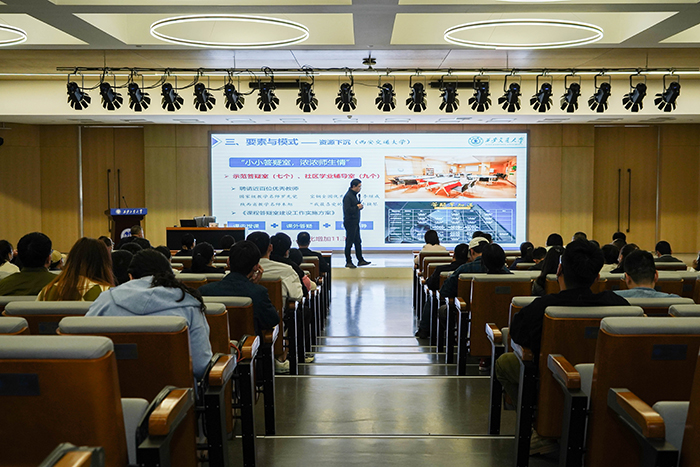 (本网讯)5月11日,西安交通大学周远副教授走进beat365学工系统“每月一课”培训现场,作《“一站式”学生社区综合管理模式建设概况与思考》主题交流。学校学生工作领导小组成员单位、各学院副书记及全体辅导员参加,学工部副部长程新峰主持会议。