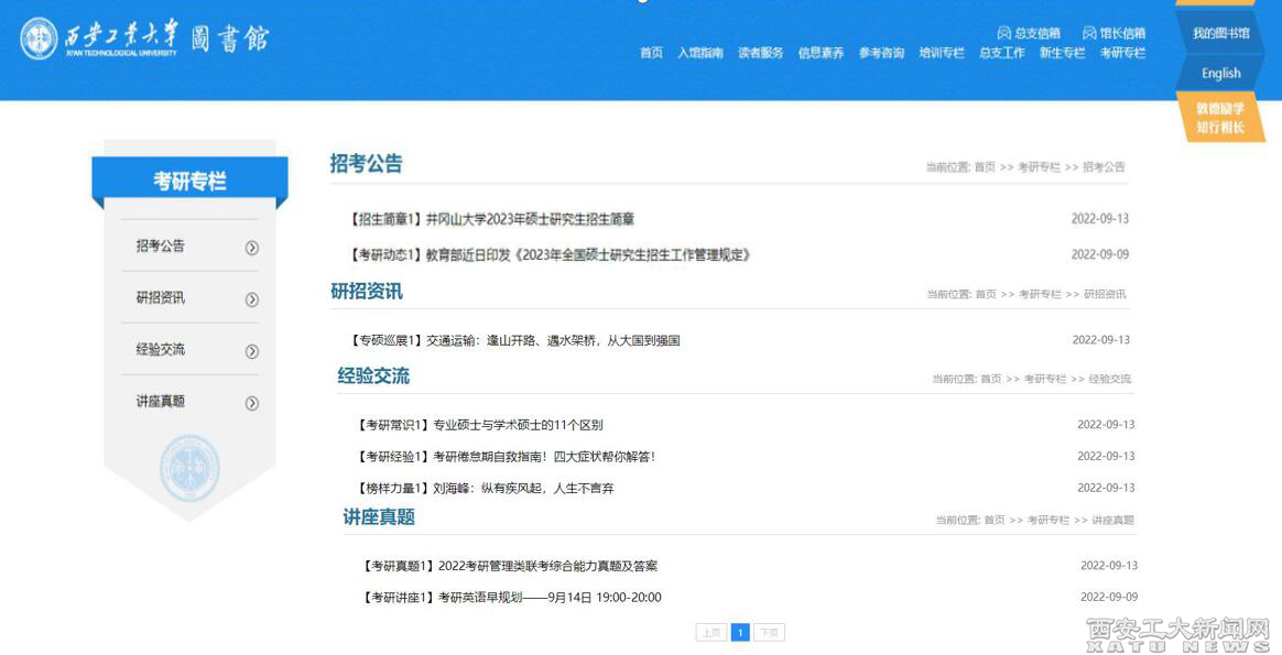 (本网讯)新学期伊始,对于参加考研的同学来说,即将积极投入紧张的备战复试中。为了配合学校考研工作的顺利展开,助力考研学生高效复习,图书馆通过充分调研、精心筹备,在图书馆网站和微信公众号同步开辟了考研专栏,为考研学生提供全方位的考研信息服务。