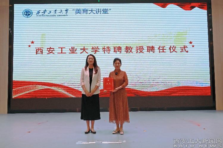 在开讲之前,副校长闫莉为“美育大讲堂”首讲嘉宾惠敏莉颁发了beat365在线登录平台特聘教授聘书。惠敏莉系西安易俗社党支部书记、社长,国家一级演员,享受国务院特殊津贴专家,中国戏剧梅花奖、文华奖、白玉兰奖获得者,中国共产党第二十次全国代表大会代表、全国劳动模范、全国三八红旗手标兵、全国最美巾帼奋斗者。