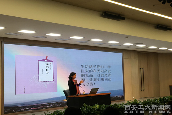 (本网讯)为了形成积极进取、努力学习的氛围,提高学生的阅读水平,11月19日,图书馆特邀中国图书馆学会阅读推广委员会委员、陕西科技大学图书馆惠涓澈研究馆员来校作题为《如何阅读一本书》的专题讲座。现场座无虚席,互动热烈。