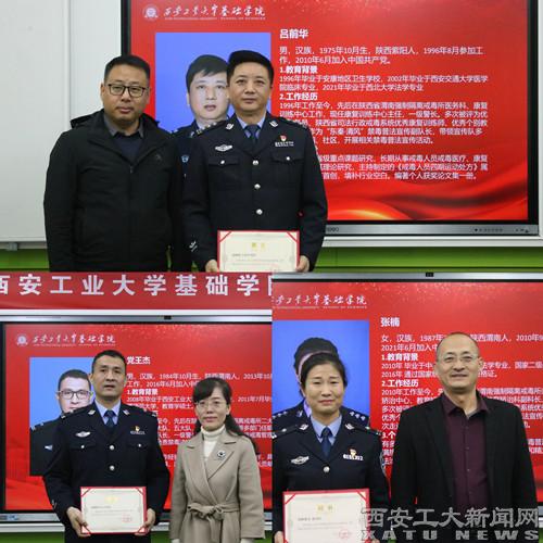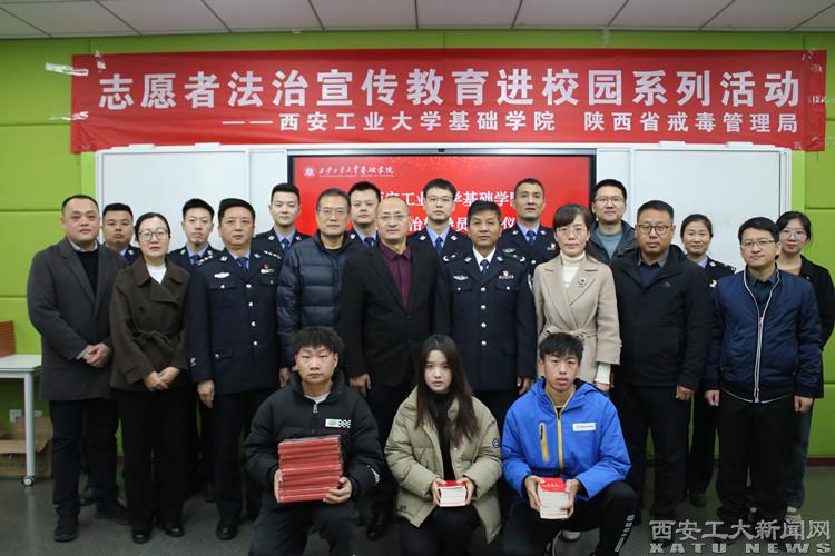 (本网讯)为进一步加强校园法治建设,提升大学生法治素养,12月5日,基础学院与陕西省戒毒管理局联合举行校外法治辅导员聘任仪式暨志愿者法治宣传教育进校园系列活动。本次活动以“大力弘扬宪法精神,推动进一步全面深化改革”为主题,积极面向大学生开展宪法宣传系列活动。陕西省戒毒管理局二级高级警长史鹏、大队长党王杰、二级警长李力,陕西省渭南强制隔离戒毒所康复训练中心主任吕前华、教育矫治科副科长张楠、一级警员刘战勇、阮航、任航,陕西省长安强制隔离戒毒所四级警长陈俞戈如约来到beat365开展活动。活动由基础学院党委副书记张艳霞主持。