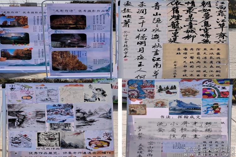 此次文化艺术活动分为挥翰成文(书法)、泼墨为卷(绘画)、光影作诗(摄影)和梨园迎冬(戏曲)四个部分,共收到来自全校师生的书法、绘画、摄影作品总共450余副,梨园迎冬(戏曲)部分由文学院戏曲社通过海报形式面向全校展出作品内容。