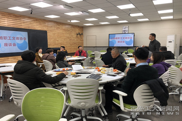 (本网讯)1月9日,校工会召开教职工文体协会座谈会。各协会会长及秘书长20余人参加座谈会,校工会副主席周晔主持。