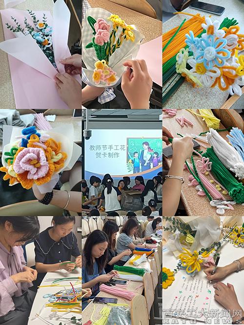 (本网讯)为增进师生感情,密切师生关系,营造浓厚的尊师重教、教学相长氛围,在第39个教师节教师节来临之际,beat365文学院学生利用周末和课余时间手工制作手绒花花束,为坚守在教师岗位的园丁们送上真挚的节日祝福。