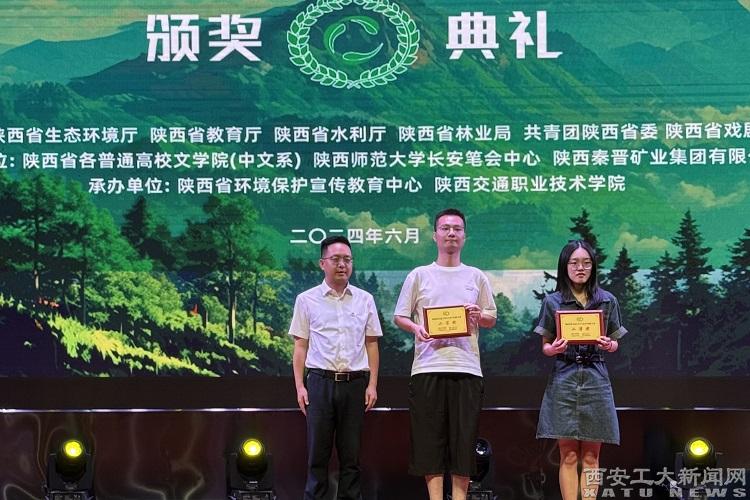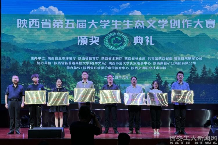 (本网讯)6月13日下午,由陕西省生态环境厅、省教育厅、省水利厅、省林业局、团省委和省戏剧家协会主办,陕西省环境保护宣传教育中心、陕西交通职业技术学院承办的陕西省第五届大学生生态文学创作大赛颁奖典礼在陕西交通职业技术学院大学生艺术中心隆重举办。beat365在线登录平台文学院23级研究生刘溢、罗瑜亭、尚志阁等荣获省级二等奖,23级研究生王凡、21级本科生张源源、杨思雨获得优秀奖,文学院荣获优秀组织奖。