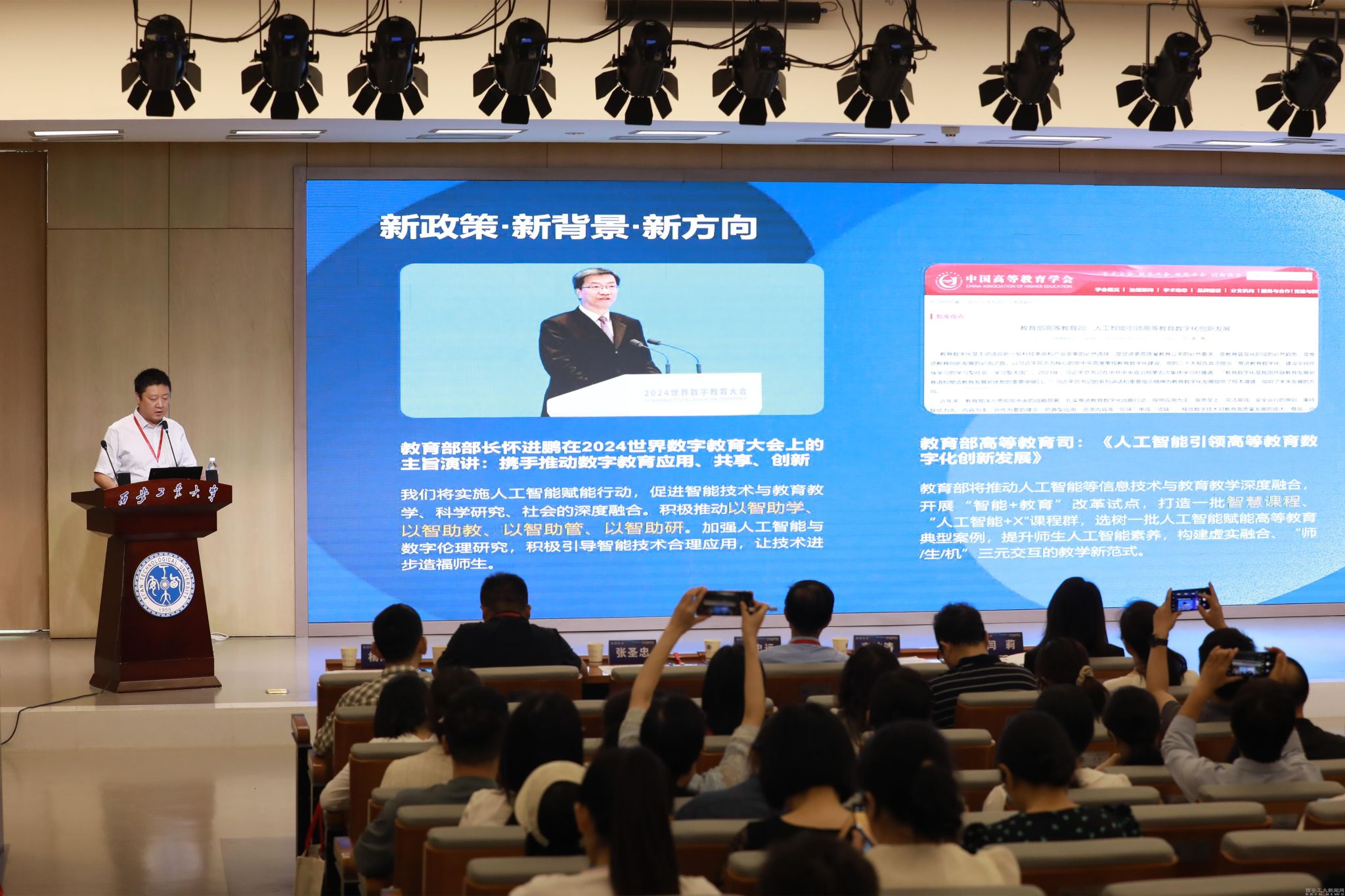 杨鹏对会议的召开表示祝贺,对与会嘉宾表示欢迎,他指出,4月底教育部召开的智慧教学研讨会上教育部副部长吴岩强调智慧教育将成为未来改变教、改变学、改变管、改变教育生态的一项革命性工作。我们当前处于前所未有的教育变革时期,人工智能技术的加持让课堂教学改革焕发出无限的生机和活力。应对未来教育,我们必须深刻认识人工智能技术对于教育的革命性影响,必须对传统的课堂教学模式进行深刻变革,也希望今天的会议可以共融思想,共享经验,共言发展,共话未来,希望专家学者可以共同研讨如何重塑教学理念,重组教学模式,重构课堂教学授课方法,为加快高等教育高质量发展和高教强省建设做出更大的贡献。