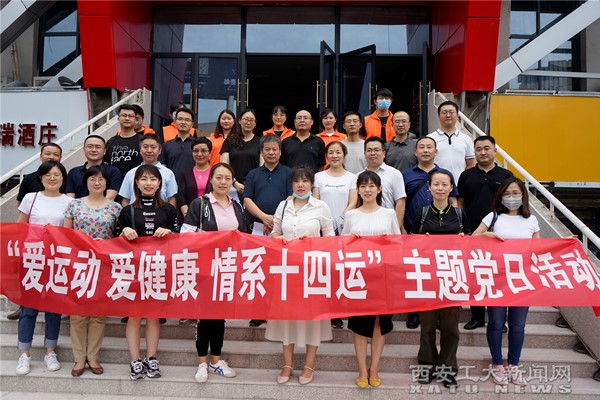 (本网讯)6月19日,机关党委宣传部党支部、学工部党支部、团委党支部联合在陕西省体育场开展“爱运动、爱健康,情系十四运”主题党日活动。校党委副书记王军周,三个党支部全体党员,以及职工代表等20余人参加。