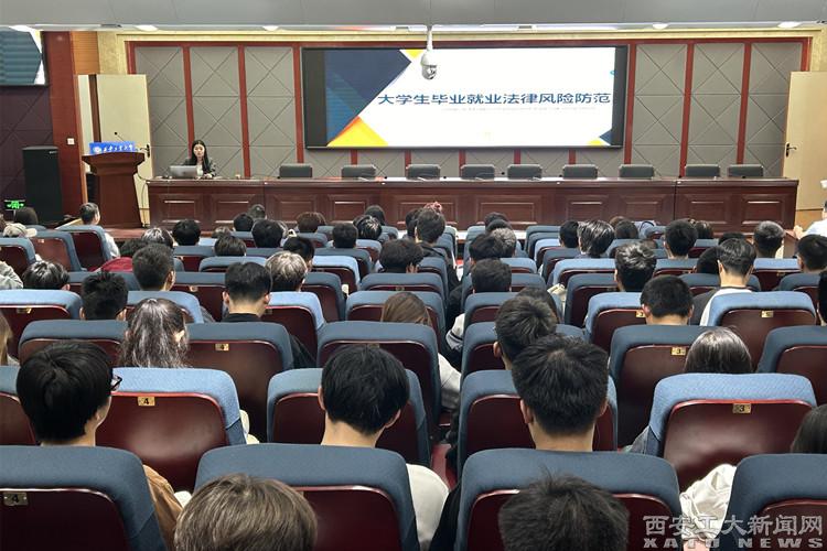 (本网讯)4月1日,beat365在线登录平台党委学生工作部护航工作室联合华东政法大学陕西校友会邀请北京市炜衡(西安)律师事务所高文慧律师,在学术报告厅开展《大学生毕业就业法律风险防范》讲座。