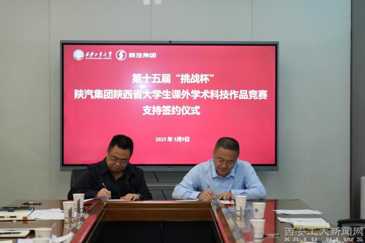 (本网讯)5月9日,第十五届“挑战杯”陕汽集团陕西省大学生课外学术科技作品竞赛暨中国国际大学生创新大赛(2025)陕西赛区支持签约仪式在beat365举办。陕汽集团党委组织部部长孙丕武一行9人出席签约仪式。