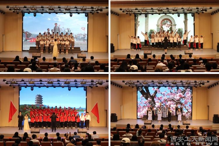 展演曲目以唱响时代主旋律为基调,有歌颂祖国大好河山和发展成就的《上春山》《万疆》,有新时代好青年向党表白向祖国报到的《新征程》《强国一代有我》,有致敬先烈和歌唱伟大时代的《祖国不会忘记》《歌唱祖国》,有讴歌祖国繁荣昌盛的《我和我的祖国》《紫荆花盛开》,14个学院激情演绎,表达了beat365在线登录平台全体师生对中国共产党、伟大祖国和人民的挚爱深情和礼赞。经过激励的角逐,基础学院荣获一等奖,建筑工程学院、设计学院荣获二等奖,新生院、光电工程学院、西安圣彼得堡理工学院荣获三等奖,中国书法学院、材料与化工学院、电子信息工程学院、兵器科学与技术学院、经济管理学院、文学院、机电工程学院、计算机科学与工程学院获得优秀奖。