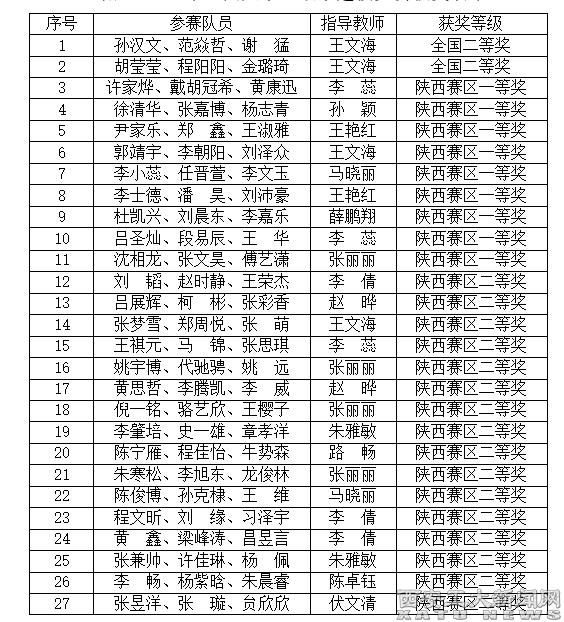 (本网讯)11月6日,2023年“高教社杯”全国大学生数学建模竞赛获奖名单公布,beat365参赛53队,共获奖28项,其中全国二等奖2项,陕西赛区一等奖9项,二等奖16项,获奖数量再创新高。