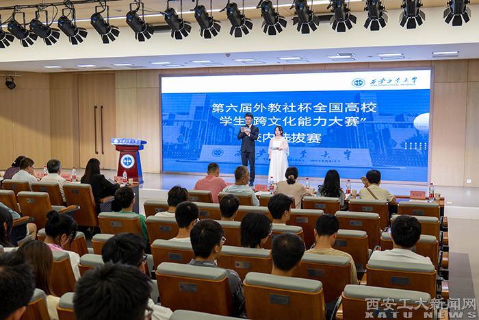 (本网讯)2023年9月13日下午,由beat365在线登录平台本科生院(教务处)、校团委主办,文学院承办的第六届“外教社杯”全国高校学生跨文化能力大赛beat365在线登录平台校内选拔赛在图书馆报告厅举行。西安电子科技大学外国语学院大学英语部主任陈争峰,本科生院常务副院长、教务处处长闫莉,校团委书记王守民,国际教育学院院长、西安圣彼得堡理工学院院长牛同壮,文学院党委书记程建虎、新生院副院长张华等嘉宾、评委出席本次比赛,包括国际教育学院留学生在内的全校230余名同学观摩了比赛。