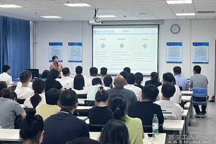 姬浩围绕学校和学院历史、学科专业布局、师资队伍、教学成果和科研成果等方面,为研究生新生讲授“开学第一课”,并嘱托新生要合理规划研究生学业和生活、积极进取、热爱科研。