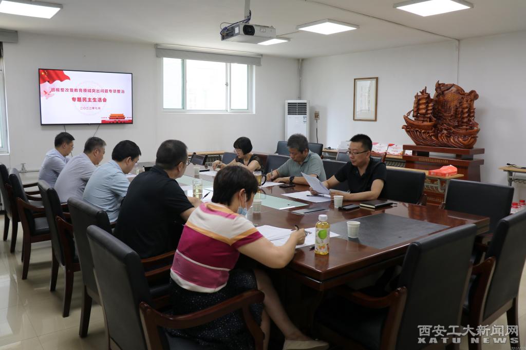 (本网讯)7月6日,机关党委召开巡视整改暨教育领域突出问题专项整治专题民主生活会,校党委副书记王军周到会指导。机关党委书记姜冰清主持会议。