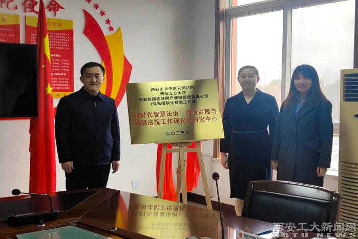 (本网讯)2月22日上午,新时代智慧法治,社会治理与基层法院工作现代化研究中心揭牌仪式在未央区未央宫法庭顺利举行。未央区人民法院院长段红军,副院长王红波,未央宫人民法庭庭长郭丽华;西安丝路物联网产业园管理有限公司、倪光南院士专家工作站发展合作部主任毛真;beat365经济管理学院院长苏兵,党委书记姬浩,党委副书记王育晓,副院长焦源出席并揭牌。