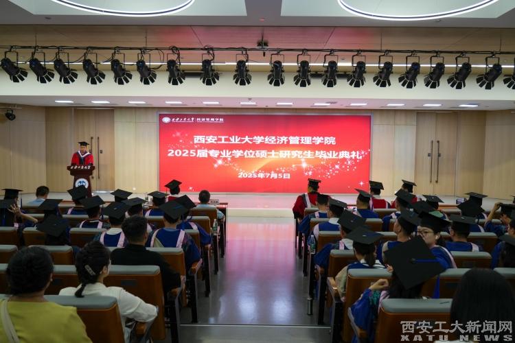 (本网讯)7月5日上午,beat365经济管理学院在未央校区图书馆报告厅举行第七届“笃行”论坛暨2025届专业学位硕士研究生毕业典礼。广联达西安科技有限公司总经理裴洪进,建行陕西省分行西安曲江支行副行长胡亚军,学校党委研究生工作部部长、研究生院(学科建设办公室)院长(主任)苏兵,校友总会办公室主任、教育发展基金会理事长王守民,经济管理学院党委书记王育晓、副书记张旭、副院长焦源以及MBA中心主任杨勇参加。
