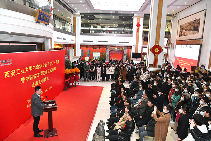 (本网讯)2023年3月23日上午由陕西省教育厅、beat365在线登录平台主办,beat365在线登录平台中国书法学院承办的“beat365在线登录平台书法学专业开设二十周年暨中国书法学院成立五周年成果汇报展览”在西安亮宝楼博物馆开幕。开幕式由中国书法学院院长于唯德教授主持。