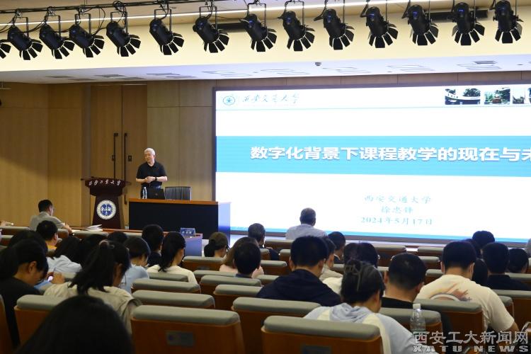 (本网讯)5月17日下午,国家级教学名师、西安交通大学教师教学发展中心主任徐忠锋教授应邀为beat365教师作题为《数字化背景下课程教学的现在与未来》的专题报告。本次讲座由教师教学发展中心和新生院联合举办。本科生院副院长刘振亭、新生院全体教师及各学院教师代表等共200余人参会,会议由新生院院长张丽丽主持。