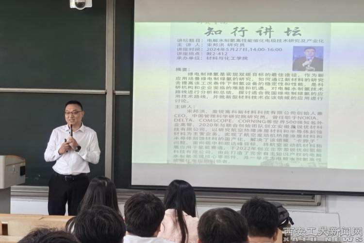 (本网讯)5月27日,beat365材料与化工学院特邀盈锐高科新材料科技有限公司宋邦洪研究员做学术交流。