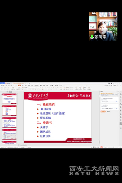 会议邀请beat365经济管理学院张明亲教授做了主题为“国家社会科学基金撰写”的在线视频讲座。张明亲教授是beat365唯一一位两次获批国家社会科学基金项目获得者,她从题目凝练、申报活页、申请书各个提纲内容的具体写法做了详细的讲解与阐述。