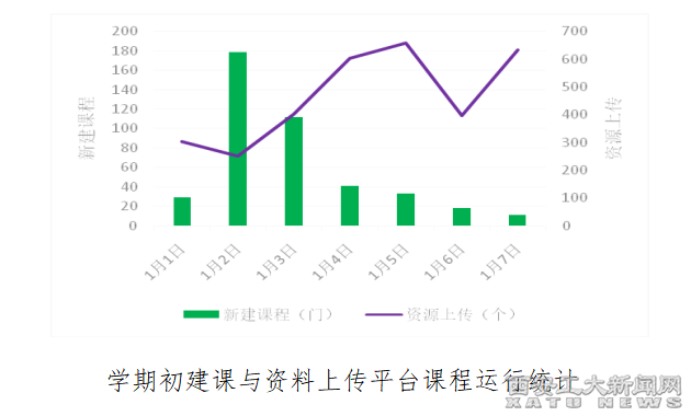 教学平台统计发现,2022年1月1日至1月7日,全校教师共组建课程2121门次,新建课程423门。