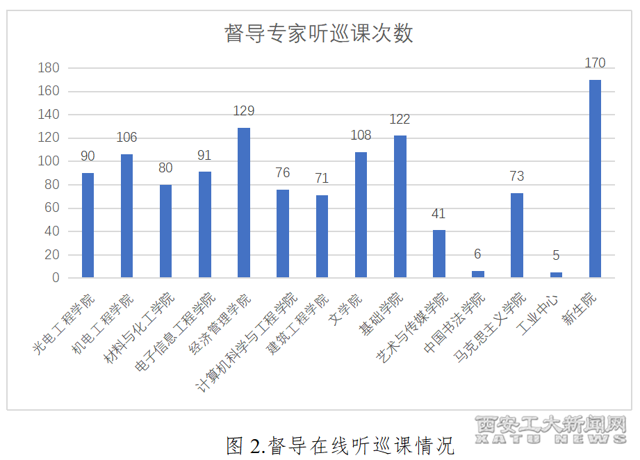 本周校督导团听巡课1168人次,开课教师100%覆盖,占总开出课程门次70.45%,发现并反馈具体问题306个。督导专家重点督查了线上教学秩序,教师线上教学状态、工具使用情况、教学设计、教学内容、课程思政、学生为中心的课堂组织与管理等内容。从听巡课中可以看出,绝大多数教师课件设计良好,对直播工具的使用熟练,课程内容讲解清楚,与学生有一定程度的直播互动,当直播平台故障时,能够快速的切换备选方案,保证教学运行平稳。